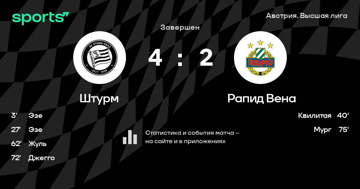 Штребингер - Ауэр, Хофманн, Зоннляйтнер, Турнвальд - Шваб, Любичич, Мург, Шауб, Бериша - КвилитаяЗапасные: Кнофлах, Мюльдюр, Павелич, Пецос, Муякич, Шобесбергер