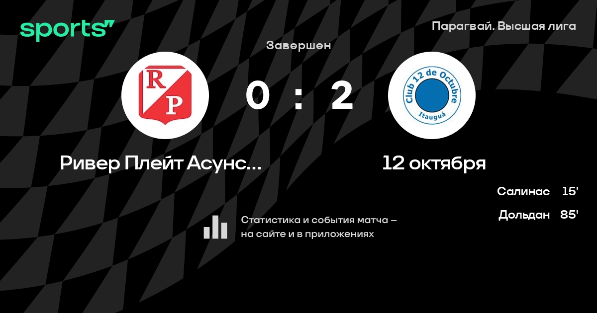 Ривер Плейт Асунсьон – 12 октября: 12 октября не проигрывает в 6 из 8 последних матчей против этого соперника