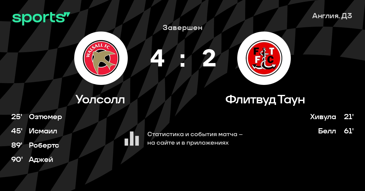 Робертс - Лихи, Гатри, Робертс, Кинселла - Бакайоко, Озтюмер, Моррис, Чемберс, Исмаил - РобертсЗапасные: Гиллеспи, Девлин, Доннеллан, Флэнаган, Кухьяр, Аджей, Джексон