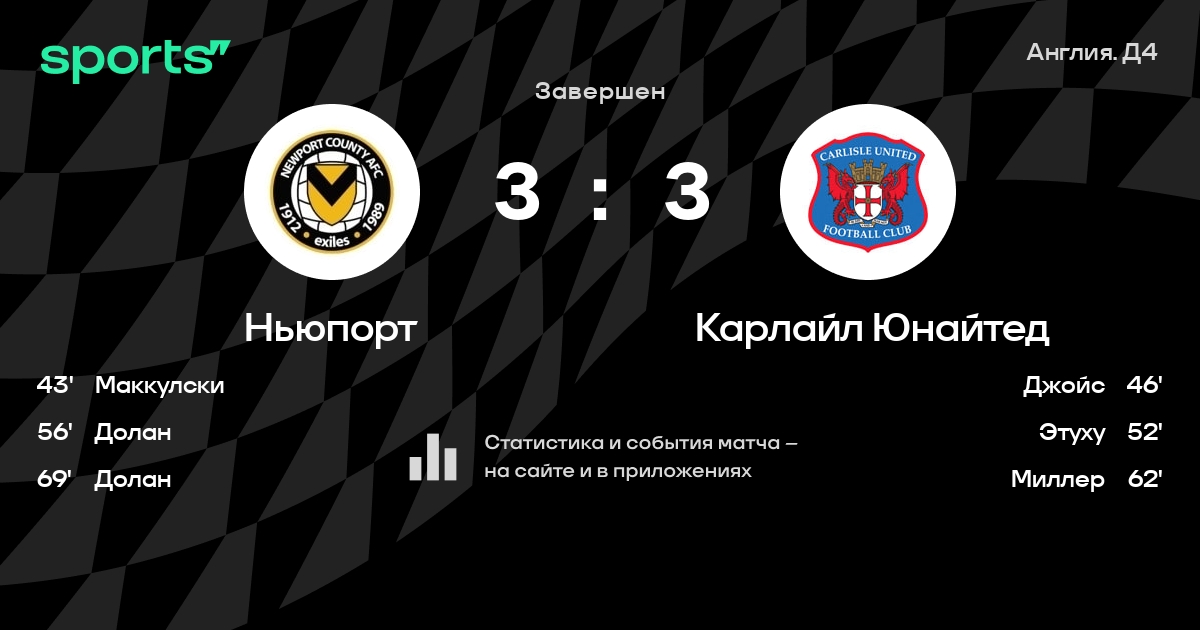 Ньюпорт – Карлайл Юнайтед: коэффициенты