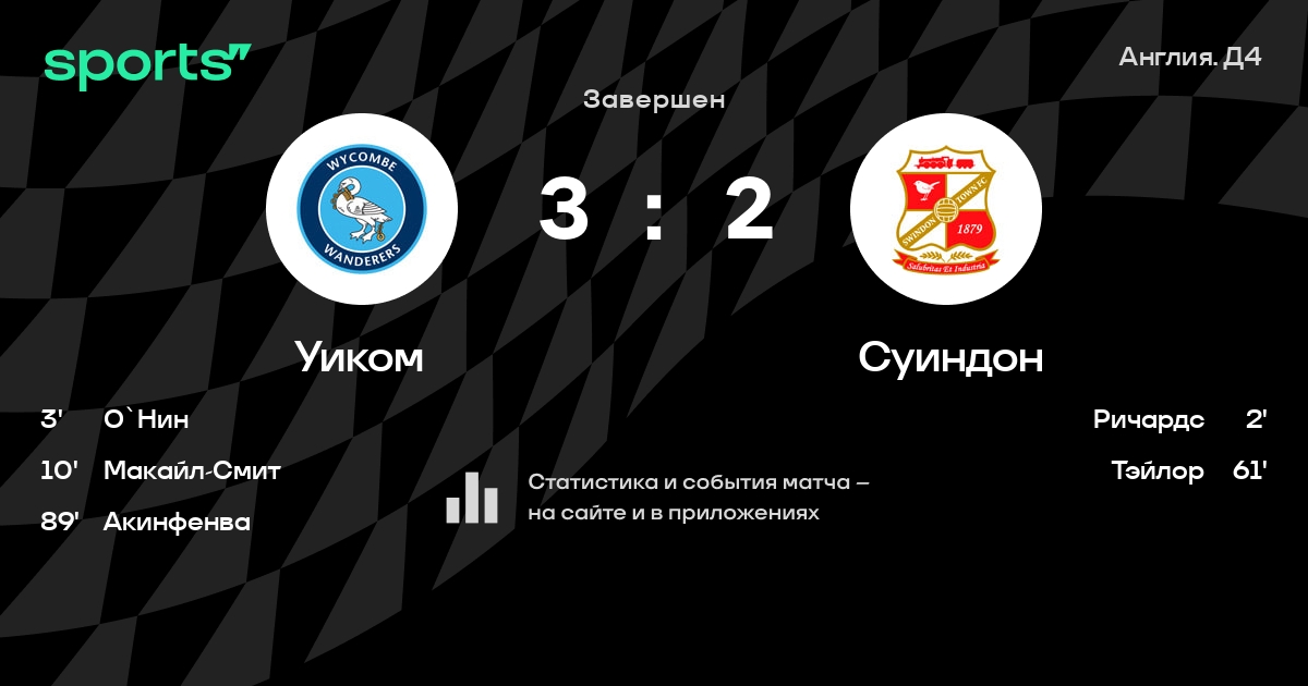 Уиком - Суиндон: положение в турнире