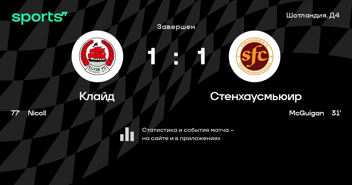 Smith - Donaldson, Dunlop, Dunlop, Meechan - Blockley, Ferry, Патон - Фернс, Longworth, McGuiganЗапасные: Макминн, Gilmour, Halleran, Маррей, McMenamin