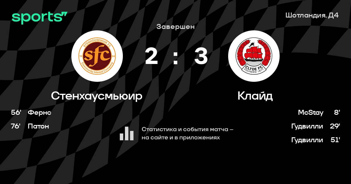 Макминн - Donaldson, Dunlop, Dunlop, Marsh, Meechan - Ferry, Пэтерсон, Патон - Longworth, McGuiganЗапасные: Фоден, Cook, Cunningham, Фернс, McMenamin