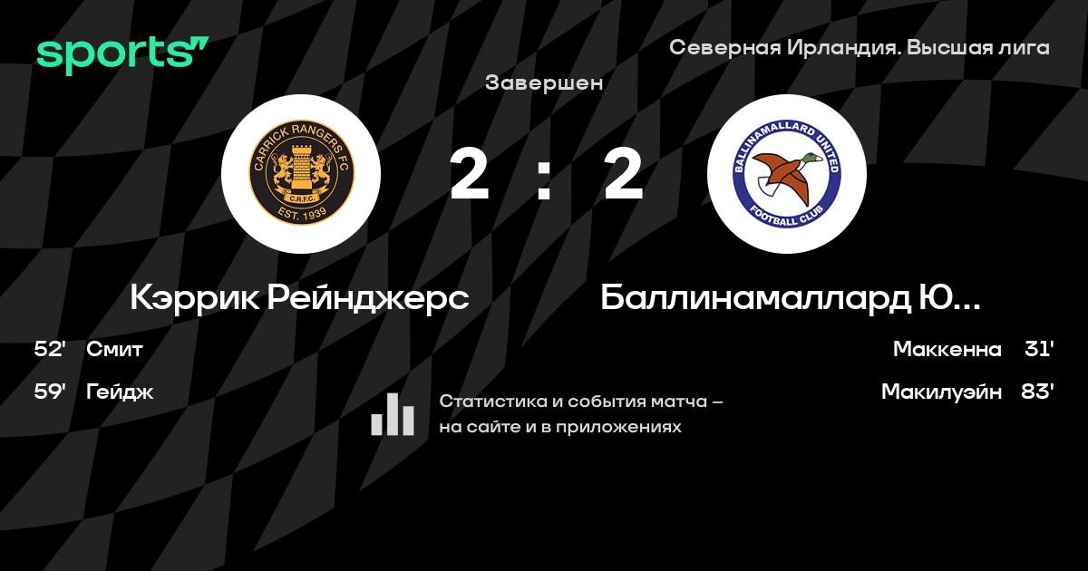 Трансляция Кэррик Рейнджерс - Баллинамаллард Юнайтед