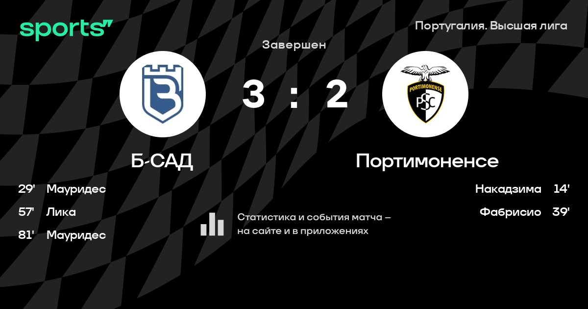 Муриэл - Анен, Нуну Томаш, Сассо, Жералдеш - Андре Соуза, Перссон, Бенни - Фреди, Мауридес, ЛикаЗапасные: Андре Морейра, Гонсалу Силва, Перейринья, Саре, Йебда, Натан