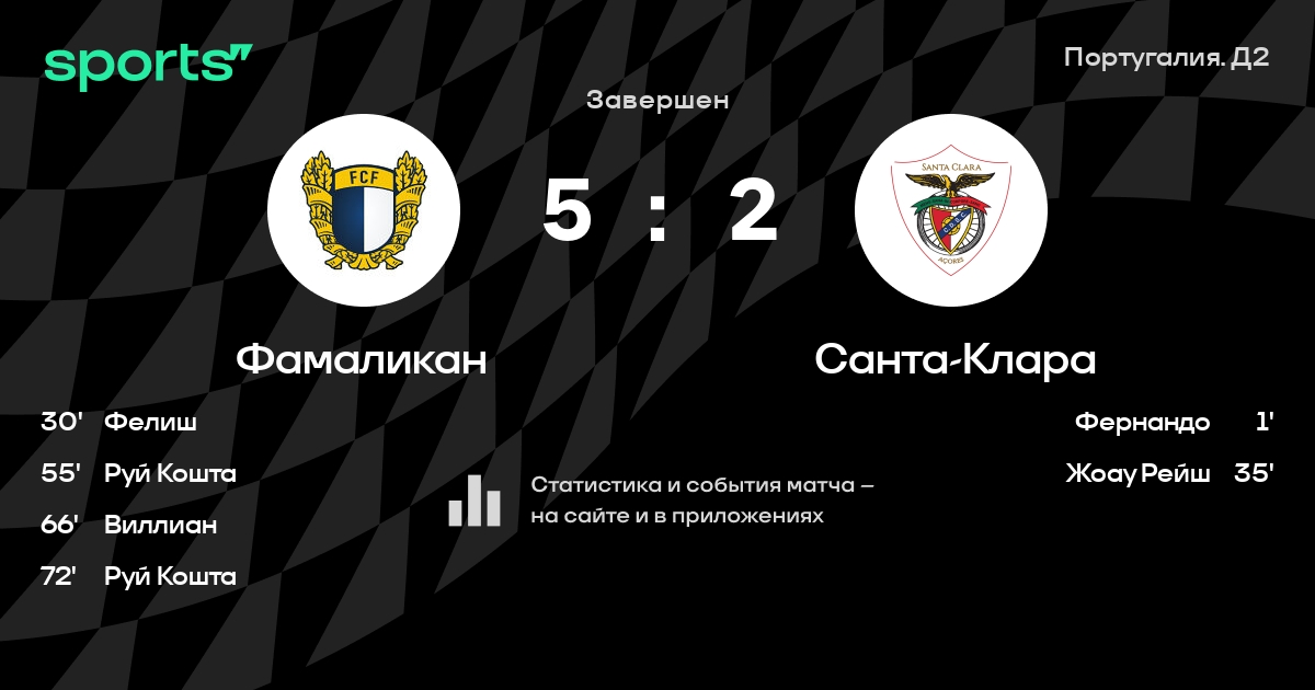 Андраде - Azevedo Silva, Жоау Рейш, Марсело Оливейра, Коэлью, Игор Роша, Панталеао - Пашеку, Рубен Салданья - Фернандо, Тиаго СантанаЗапасные: Марку Перейра, Алвеш, Диогу Сантуш, Шеттине, Пинеда, Клементе