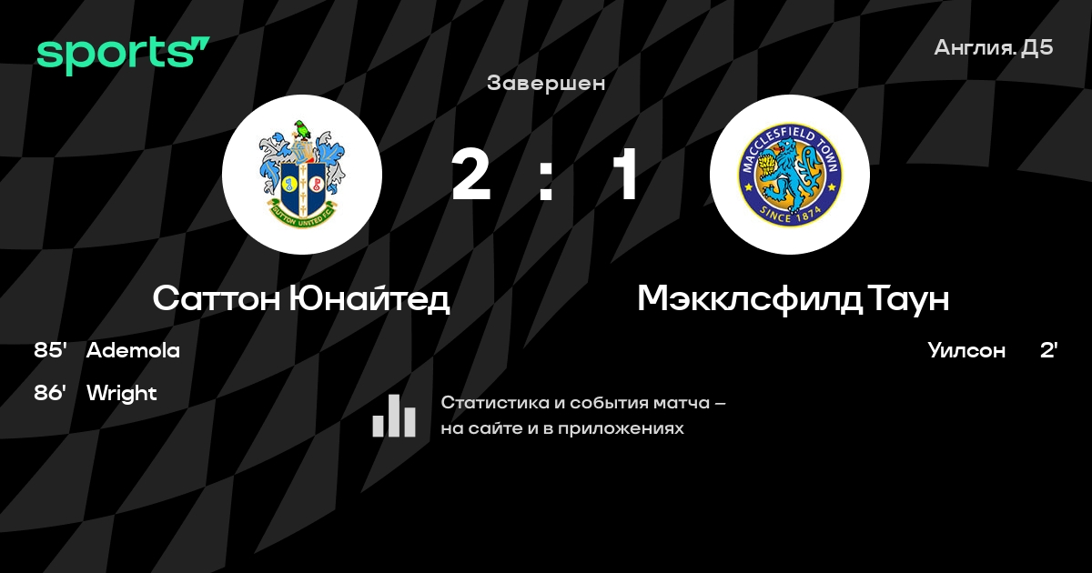 Саттон Юнайтед - Мэкклсфилд Таун: статистика матча