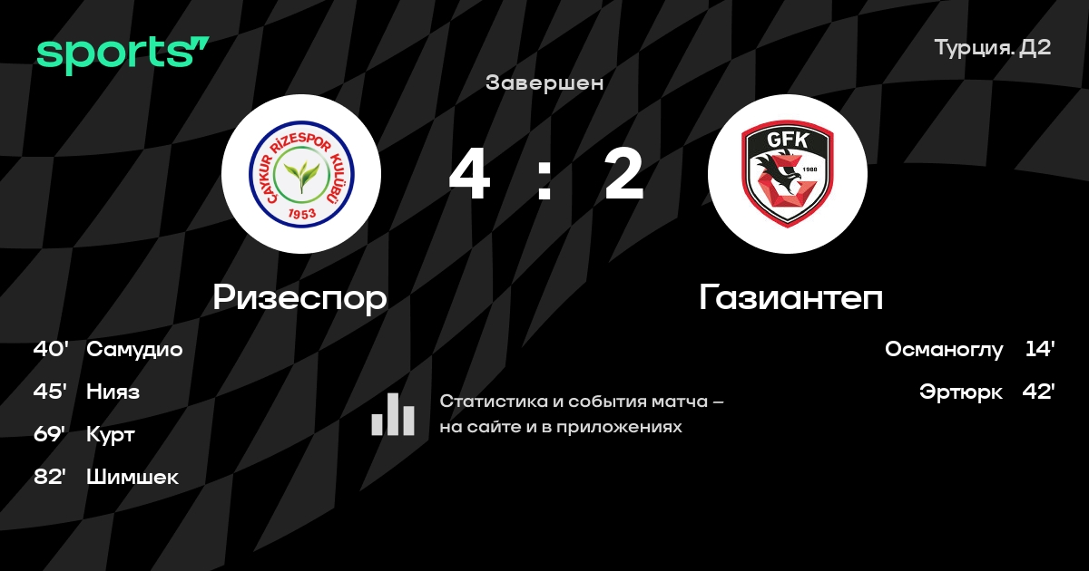 Топалоглу - Чек, Курт, Саадан, Алтынай - Нияз, Ялчин, Самудио, Линкольн, Чаглаян - МурикиЗапасные: Таракджи, Аккан, Топчу, Услу, Оваджиклы, Гюзель, Шимшек, Коч, Шахин