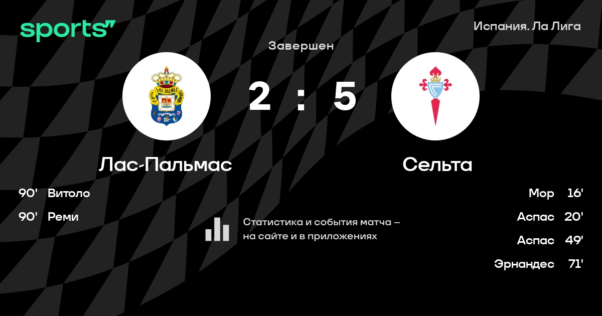 Чемпионат Испании. «Сельта» в гостях разгромила «Лас-Пальмас»
