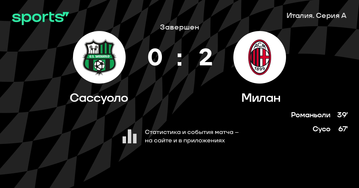 Чемпионат Италии. «Милан» победил «Сассуоло», «Фиорентина» проиграла «Роме»