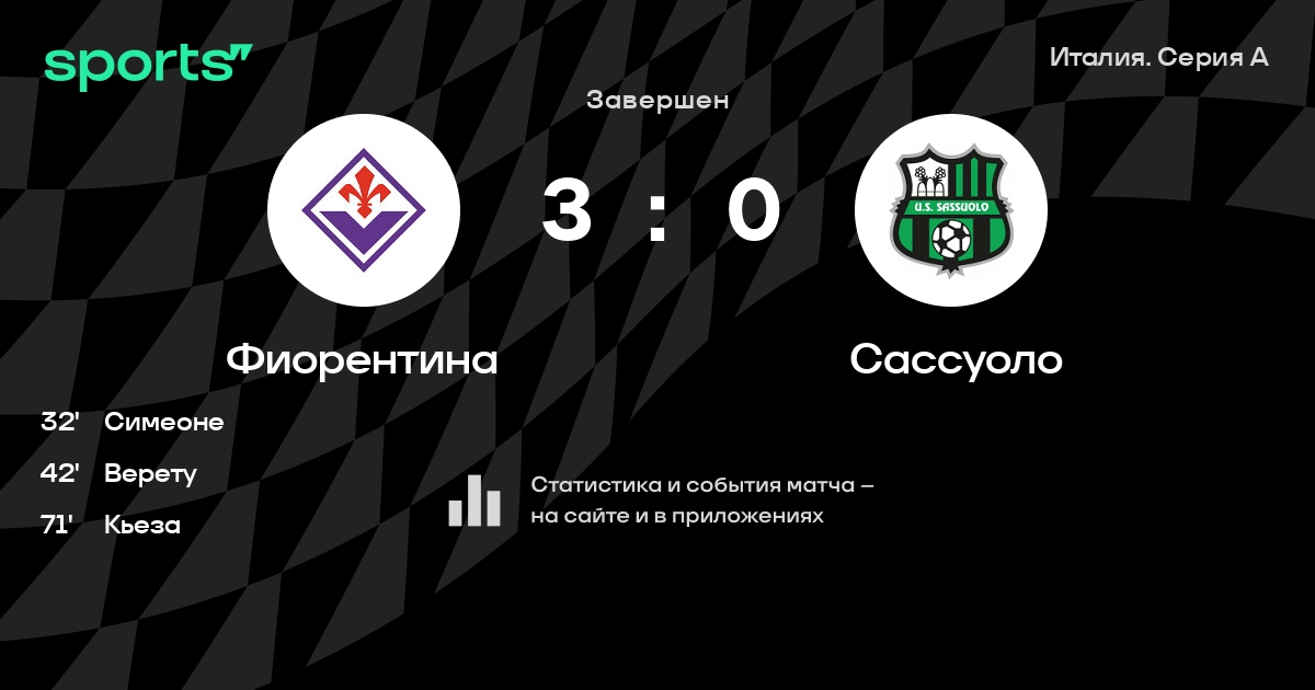 Спортьелло - Бираги, Астори, Песселья, Лорини - Бадель, Терео, Кьеза, Верету, Бенасси - СимеонеЗапасные: Черофолини, Бруну Гашпар, Витор Уго, Миленкович, Оливера, Кристофоро, Эссерик, Сапонара, Санчес, Зехнини, Жил Диаш, Бабакар
