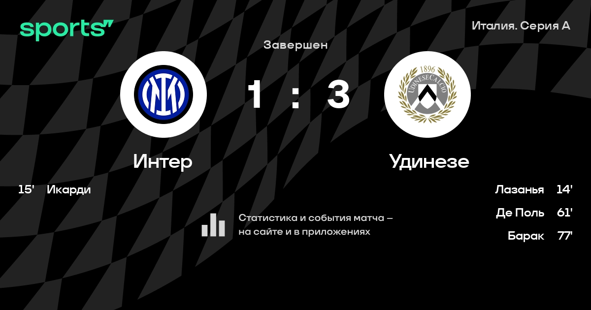 Ханданович - Сантон, Миранда, Шкриньяр, Д`Амброзио - Валеро, Весино, Брозович, Кандрева, Перишич - ИкардиЗапасные: Берни, Паделли, Жоау Канселу, Далберт, Нагатомо, Раноккия, Гальярдини, Эдер, Карамо, Пинамонти