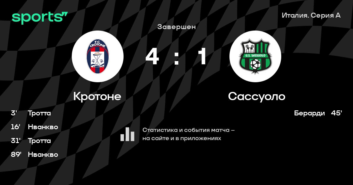 Кордац - Мартелла, Капуано, Чеккерини, Фараони - Мандрагора, Барберис, Стоян - Налини, Нванкво, ТроттаЗапасные: Феста, Айети, Павлович, Сампиризи, Симич, Крочата, Иско, Риччи, Роден, Дзанеллато, Диаби, Тумминелло