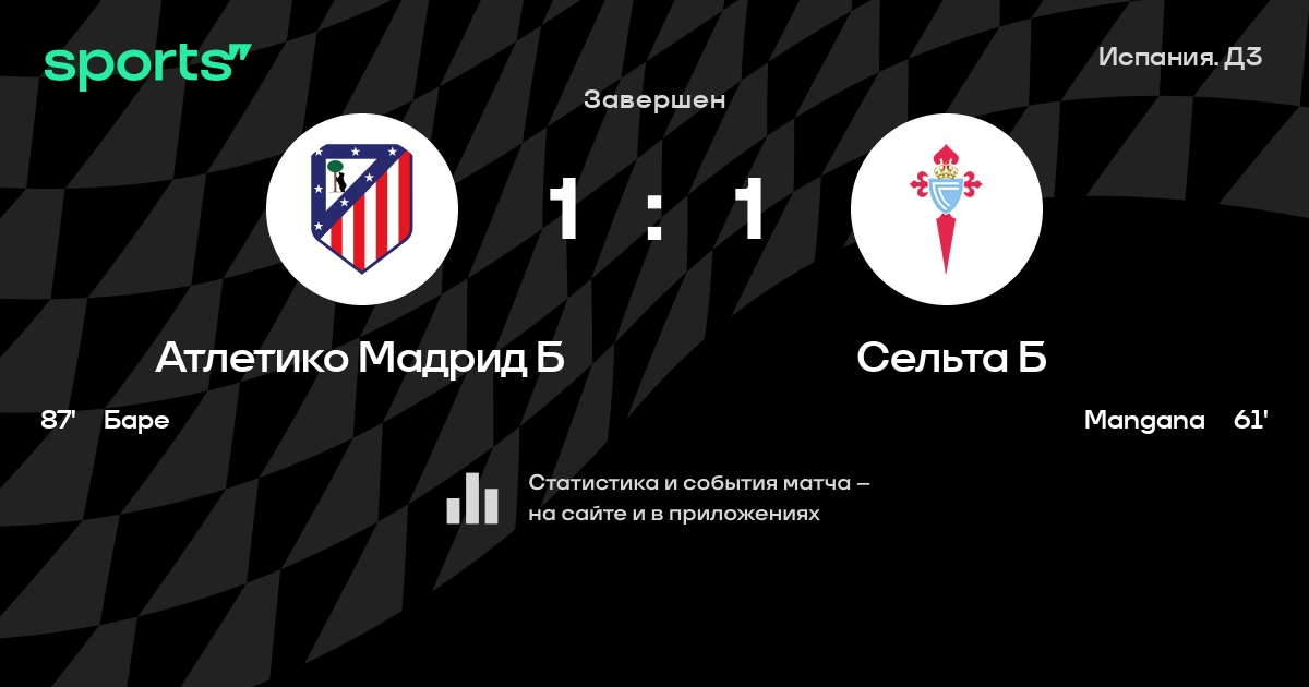 Трансляция Атлетико Мадрид Б - Сельта Б