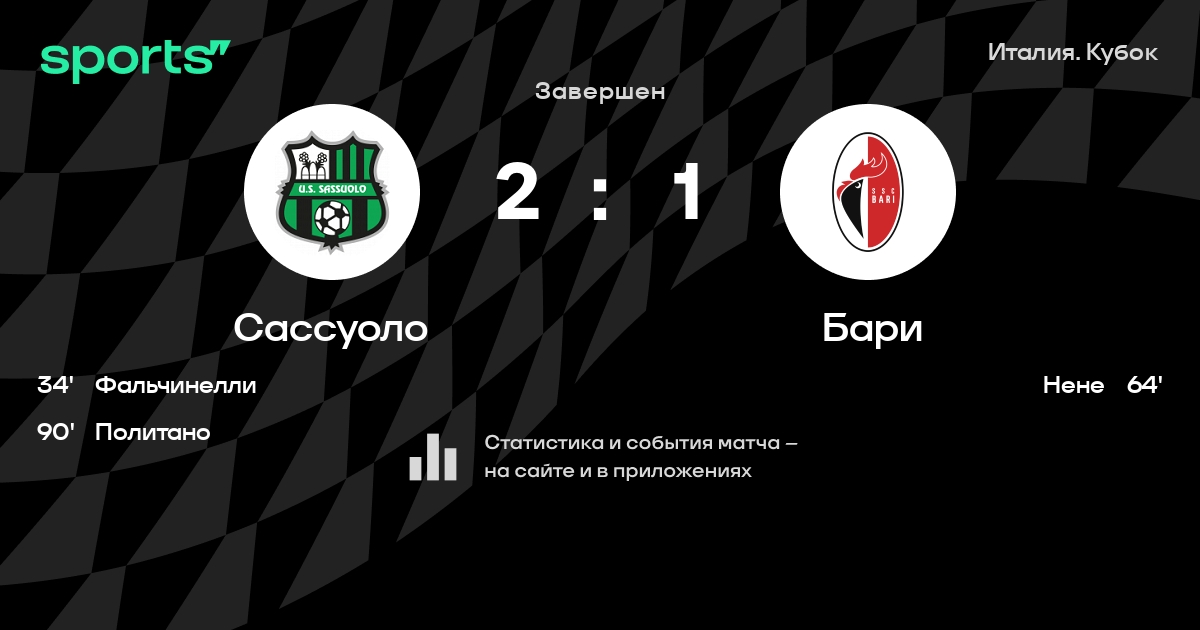 Де Лучиа - Д`Элия, Кассани, Капрадосси, Диаките, Сабелли - Сальцано, Баша, Йоколано - Бриенца, НенеЗапасные: Берарди, Конти, Андерсон, Дьомбер, Скалера, Бузеллато, Импрота, Тельо, Флоро Флорес, Галано, Козак