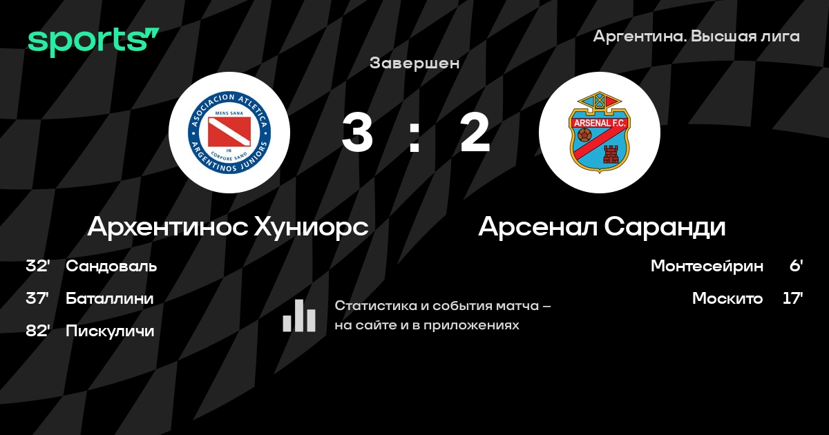 Трансляция Архентинос Хуниорс - Арсенал Саранди