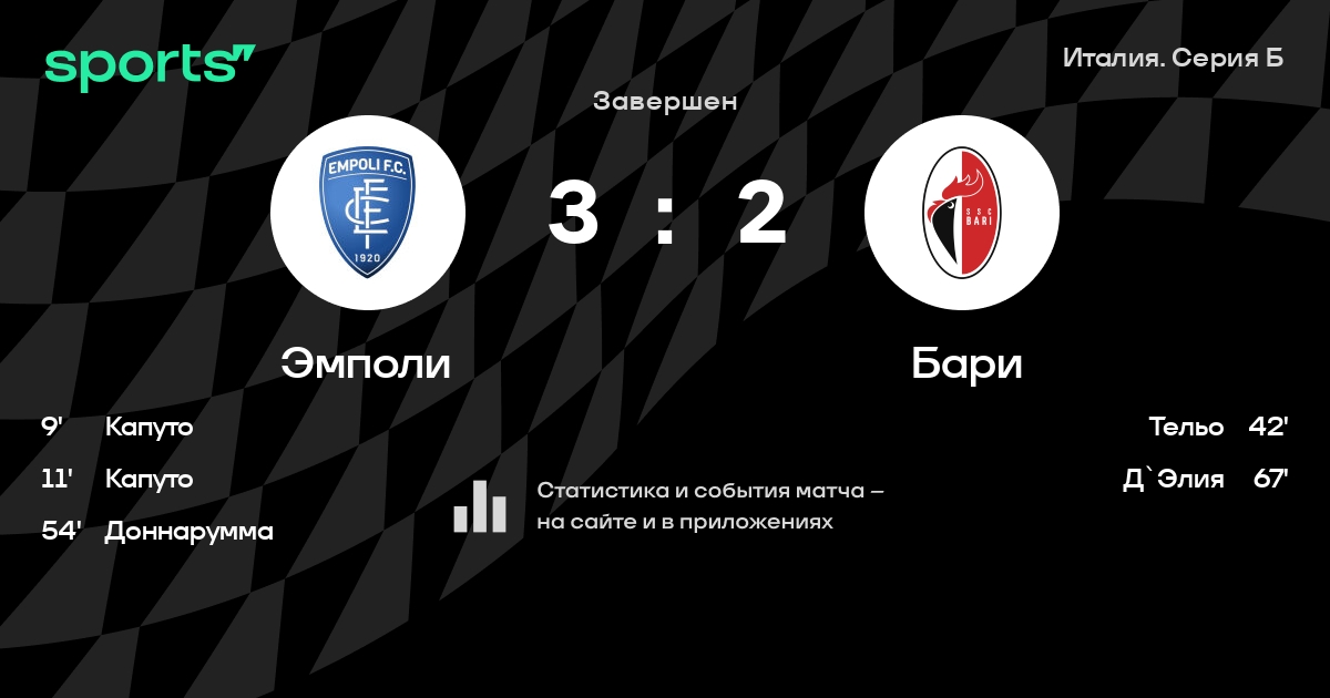 Проведель - Луперто, Романьоли, Шимич - Паскуаль, Кастаньетти, Крунич, Беннасер, Унтерзее - Доннарумма, КапутоЗапасные: Джакомель, Терраччано, Ди Лоренцо, Пейович, Польвани, Сек, Дзаппелла, Лолло, Пикки, Траоре, Зайц, Нинкович