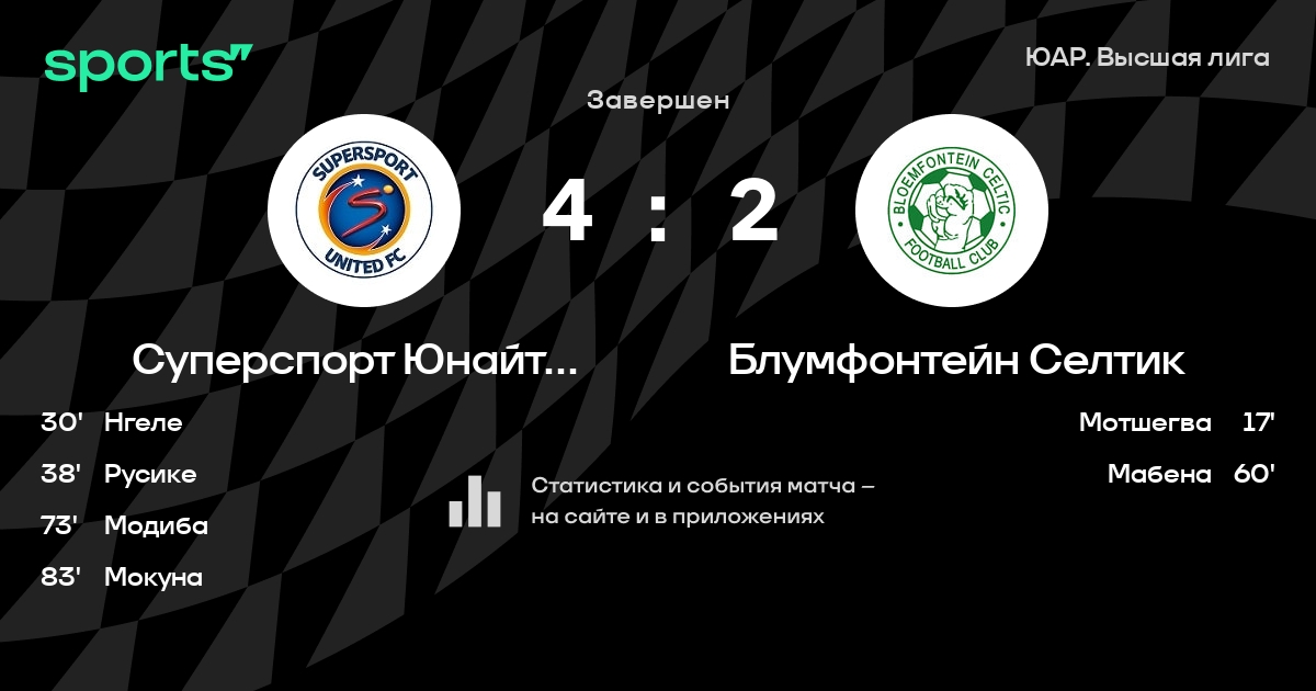 Трансляция Суперспорт Юнайтед - Блумфонтейн Селтик