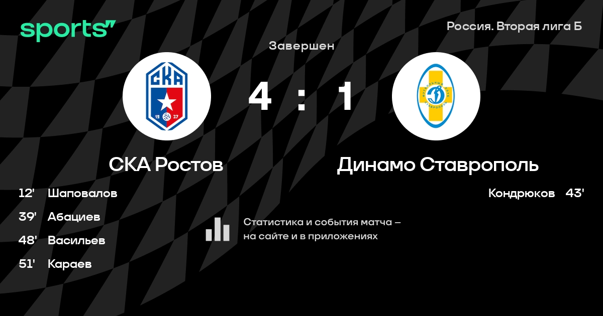 Солдатенко - Fedorov, Мироник, Казаченко - Хинчагов, Васильев, Шаповалов, Богатырев, Абациев - Караев, Шумилин