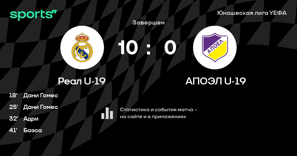 Трансляция Реал U-19 - АПОЭЛ U-19