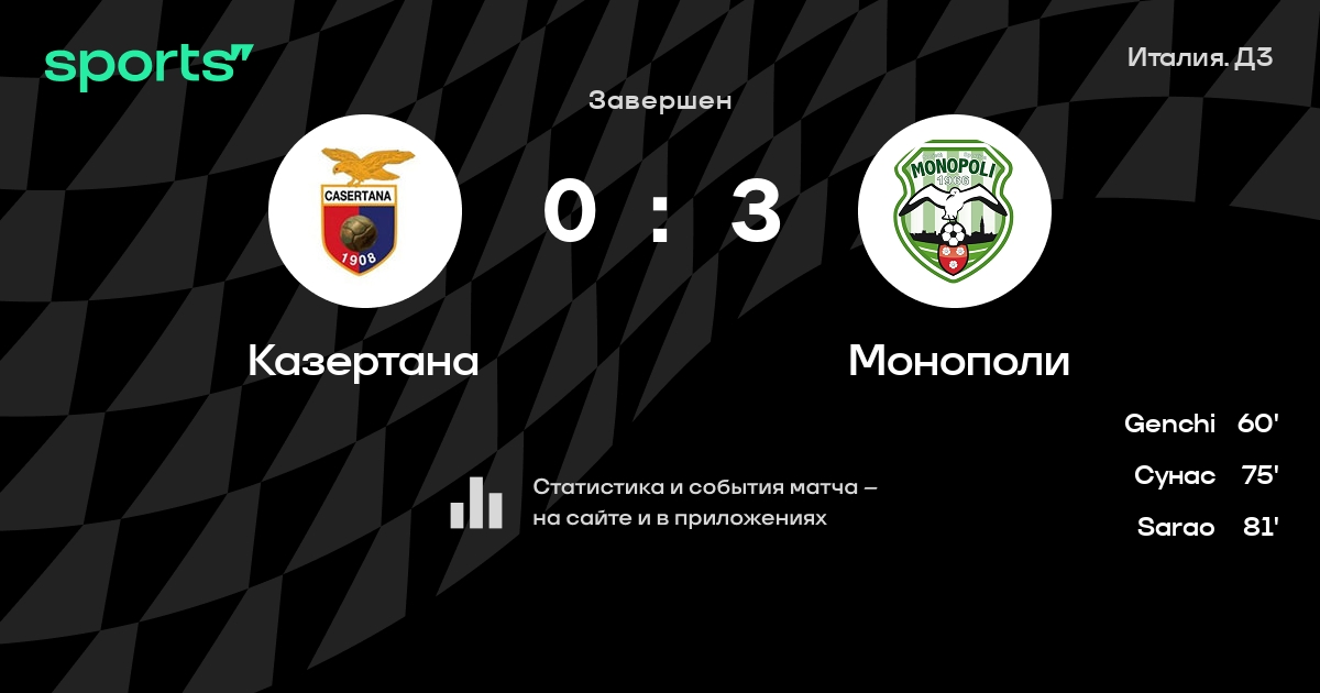 Бардини - Доннарумма, Rota, Беи, Риччи, Ferrara - Дзампа, Скоппа, Сунас - Паолуччи, GenchiЗапасные: Convertini, Баккетти, Меркаданте, Lobosco, Tafa, Russo, Diomande, Жиберт, Todisco, Longo, Sarao, Di Cosola