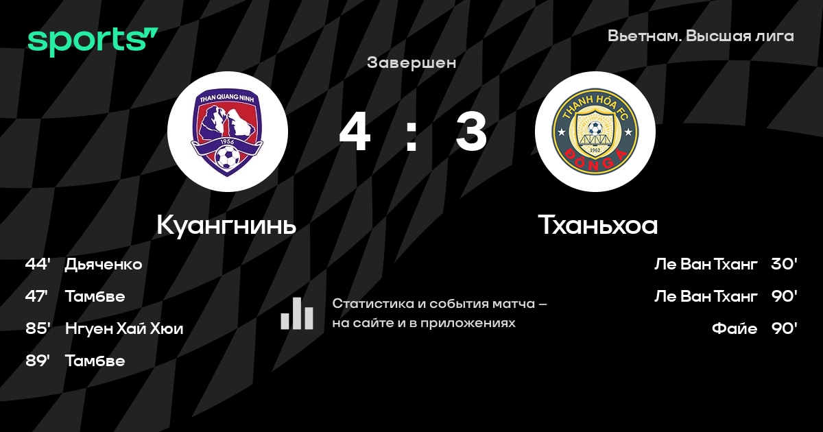 | 2 | Тханьхоа | 26 | 13 | 9 | 4 | 44 | 29 | +15 | 48 | ||
