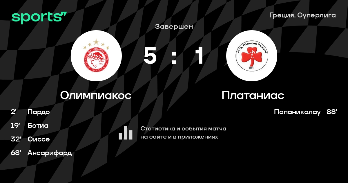 Прото - Кутрис, Сиссе, Ботиа, Фигейраш - Тахцидис, Ромао, Марин, Оджиджа-Офоэ, Пардо - АнсарифардЗапасные: Капино, Эльабделлауи, Николау, Карсела-Гонсалес, Фортунис, Андре Мартинш, Джурджевич