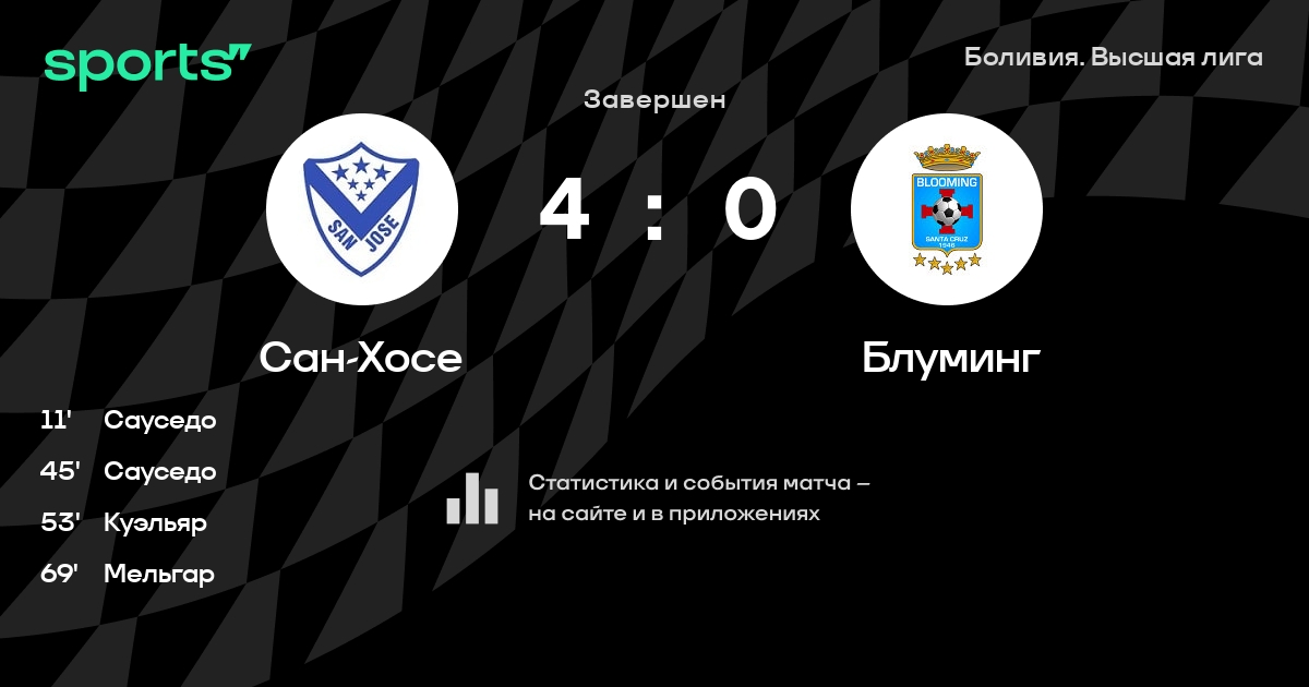 Франко - Куэльяр, Баррера, Хуарес, Торрико - Гомес, Овандо, Мельгар, Торрико - Сауседо, РамальоЗапасные: Кареага, Сангинетти, Гарсия, Танкреди, Суарес, Сеговия, Рейносо