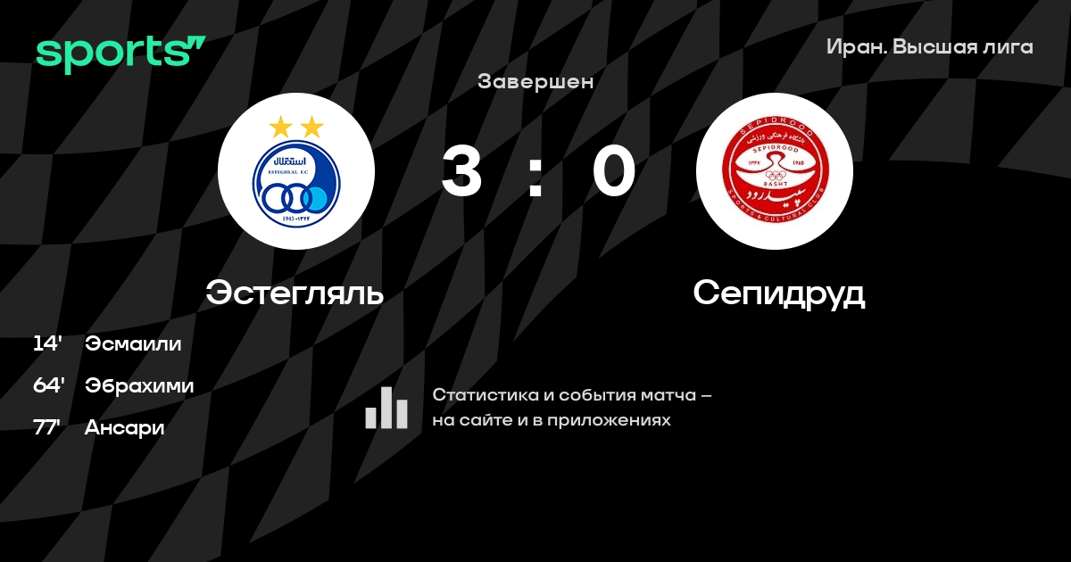 | 3 | Эстегляль | 30 | 15 | 9 | 6 | 43 | 18 | +25 | 54 | ||
