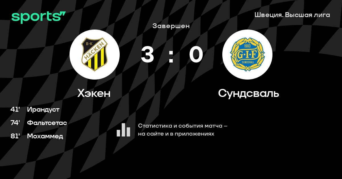 Абрахамссон - Аркивуо, Хаммар, Линдгрен, Андерссон - Фальтсетас, Бергрен, Паулиньо, Ирандуст, Челик - КамараЗапасные: Рашид, Ангелин, Вальстрем, Аккерманн, Мохаммед, Бом, Лундберг