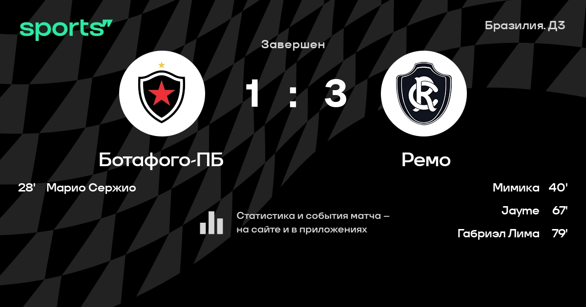 Рибейро - Бруно Майя, Мимика, Луис Густаво, Жилван Гомес - Souza Sacramento, Эвертон, Леандро Бразилия - Batista dos Anjos, Изак, Alves da SilvaЗапасные: Дуглас, Жерффесон, da Silva Evangelista, Педро Леви, Родриго Силва, Габриэл Лима, da Silva Carneiro, Элиандро