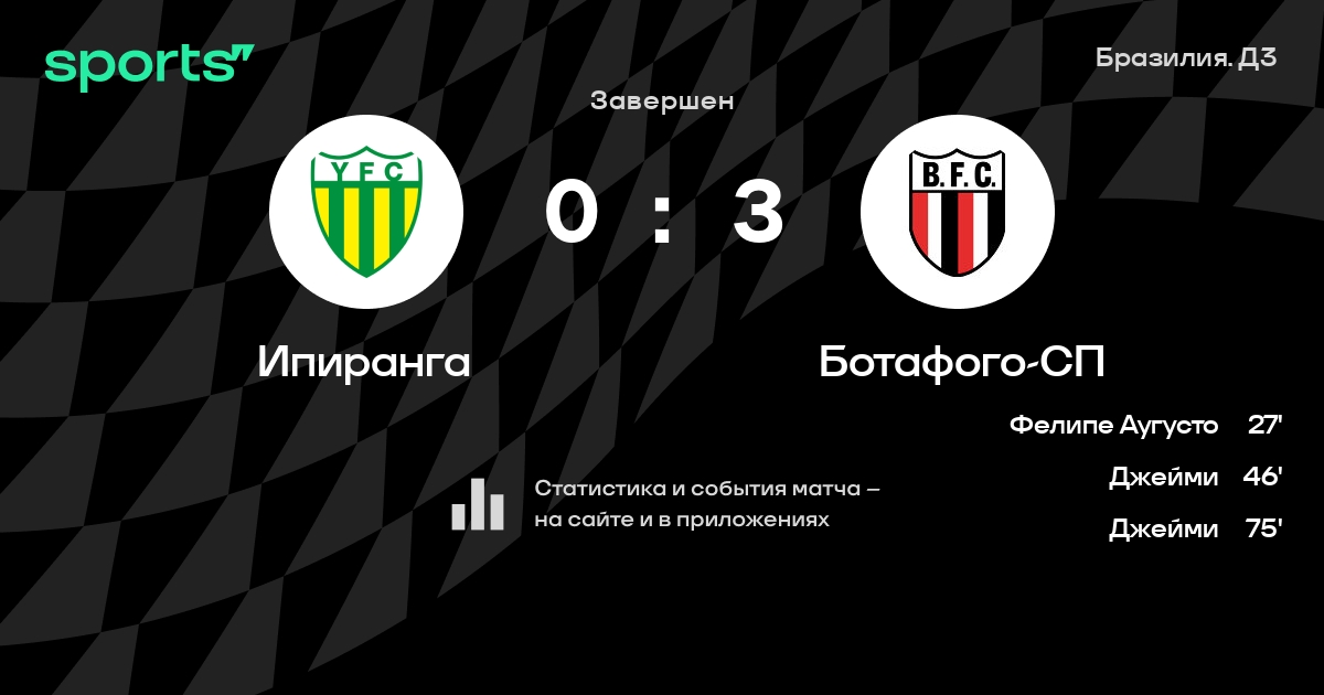 Тиаго Кардозо - Batista de Morais, Маркос, Плинио, Пери - Эвертон Элено, Юри, Гарре - Джейми, Пиментинья, Фелипе АугустоЗапасные: Firmino Pinto, Жилберто Алемао, Лукас Мендес, Эвертон Сантос, Сержиньо, Жусса, Чо, Кайо Дантас, Элдер Сантана
