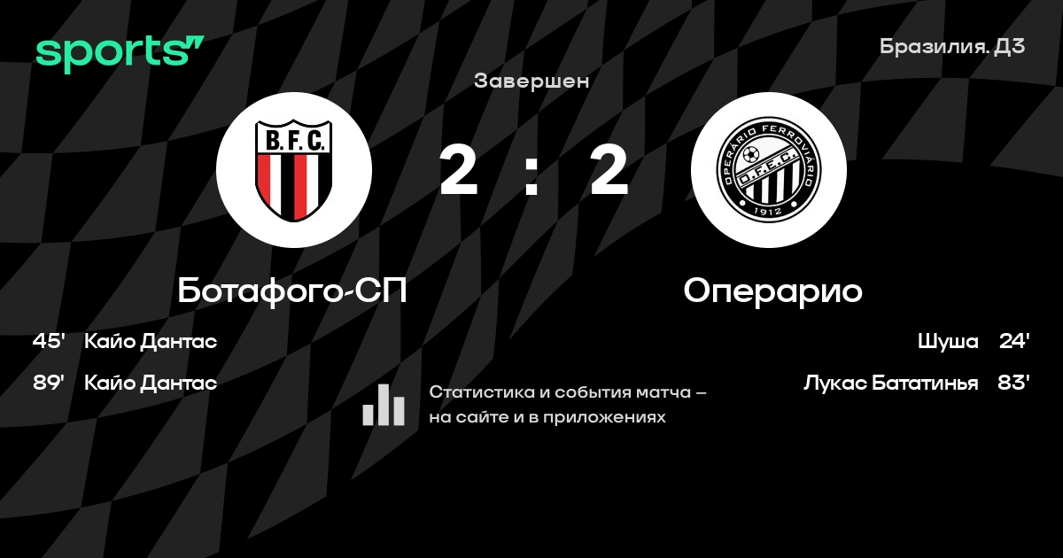 Бертелли - Фагундес, Алиссон, Пейшото - Эрик, Робиньо, Бруно Индио, Лима, Шикао, Шуша - Бруно БататаЗапасные: Артузо, Рафаэл Соарес, Соса, Дионе, Сержиньо Паулиста, Педриньо, Шумахер, Лукас Бататинья