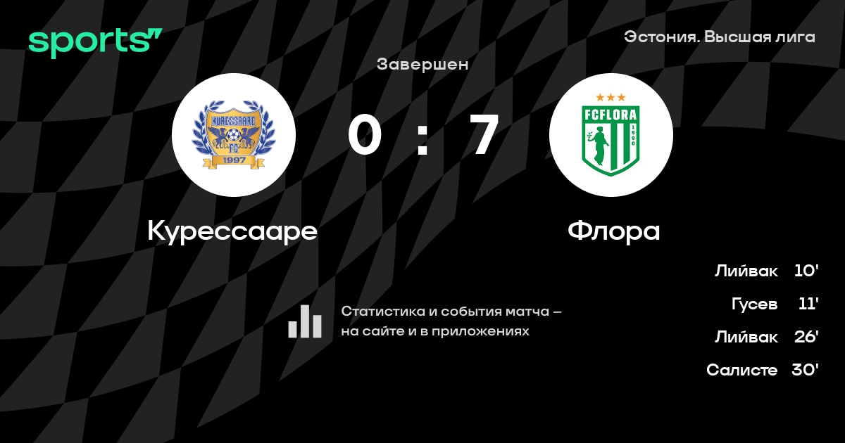 Карофельд - Салисте, Вихманн, Камс, Кууск, Алоэ - Лийвак, Гусев, Дмитриев, Бегларишвили, Поом - Запасные: , Ярвелайд, Лоренц, Лукка, Шлейн, Крейда, Сорга
