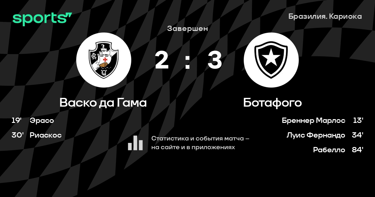 Фернандес - Марсело Консейсао, Рабелло, Марсиньо, Мойзес - Линдозо, Маркос Винисиус, Валенсия, Марсело - Луис Фернандо, Бреннер МарлосЗапасные: Джефферсон, Карли, Луис Рикардо, Бошеша, Пашу, Эзекиэл, Родриго Пимпао