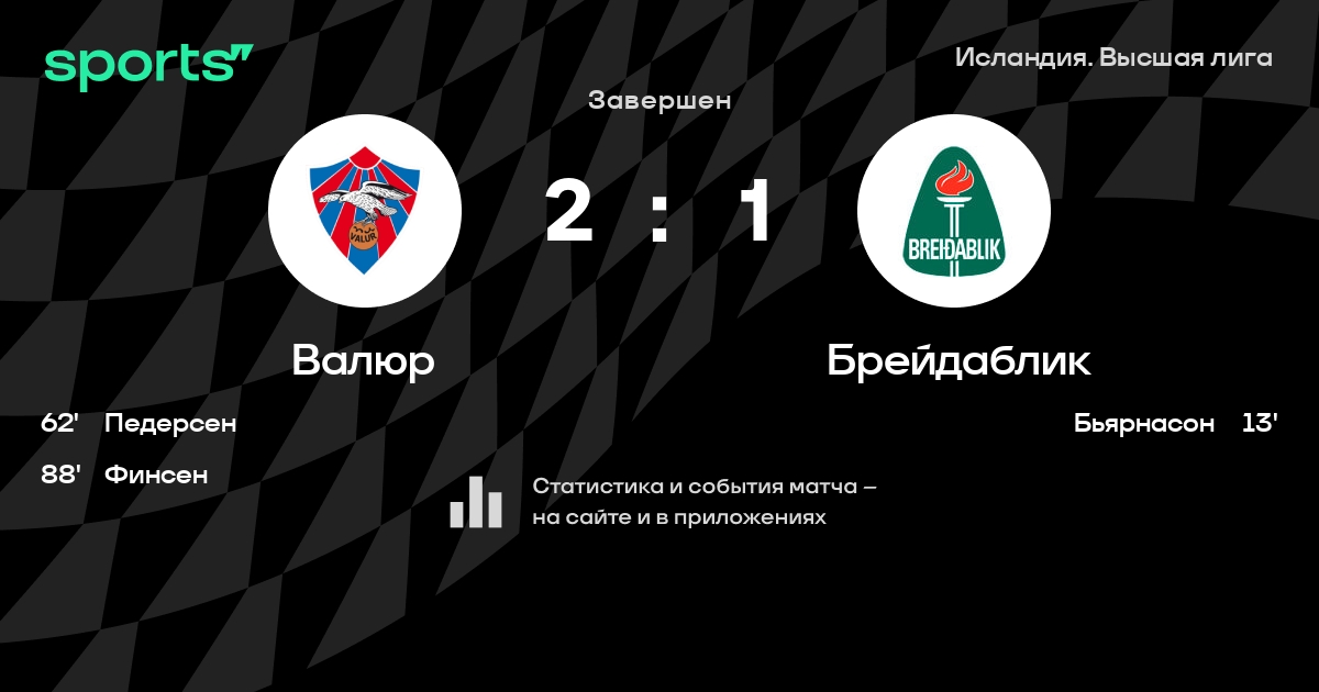 9 | Викингур Рейкьявик | 22 | 6 | 7 | 9 | 29 | 38 | -9 | 25 | ||