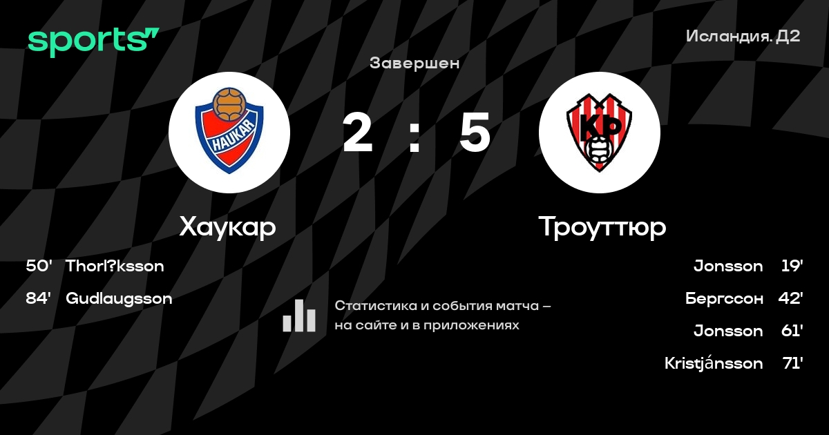 Blængsson - Кнутссон, Gudlaugsson, Kristjánsson, Хансон, Gunnarsson, Nganpanya - Þorláksson, Ингварссон, Helgason - AdalgeirssonЗапасные: Sigthórsson, Hilmarsson, Gudmundsson, Birgisson, Þorsteinsson, Jóhannesson, Bjornsson