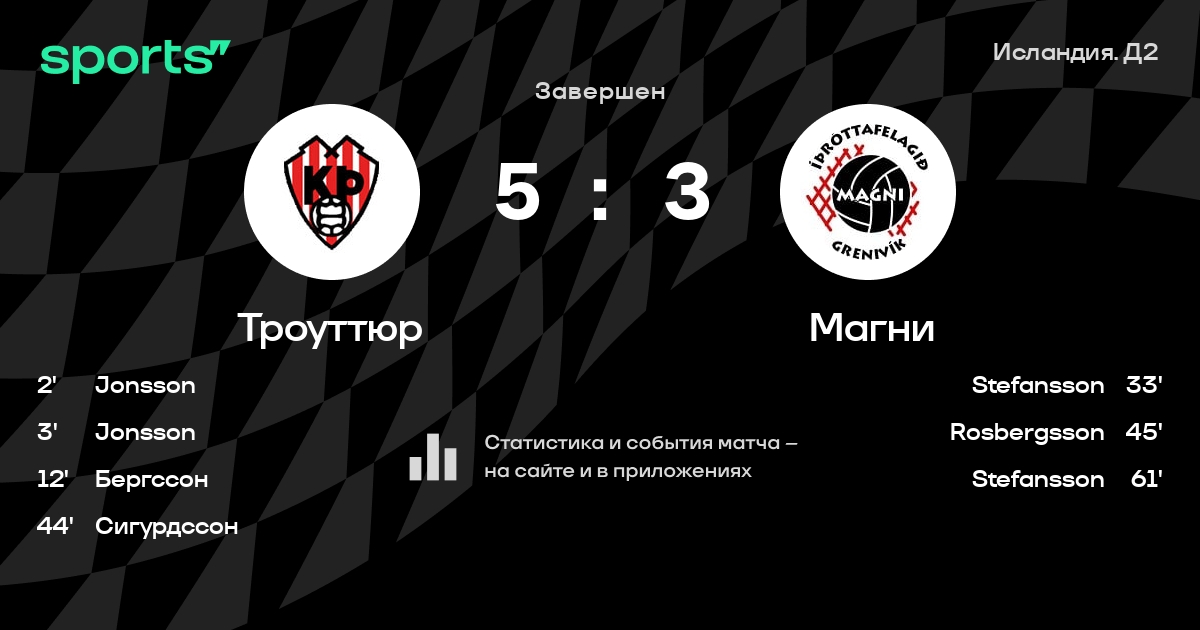 Auðunsson - Бьярнасон, Birgisson, Sigurbjörnsson, Сигурдссон - Stefansson, Petursson, Jessen, Адальстейнссон, Hafsteinsson - RósbergssonЗапасные: Heimisson, Halldórsson, Ingvarsson, Gíslason, Birgisson, Vilhjálmsson