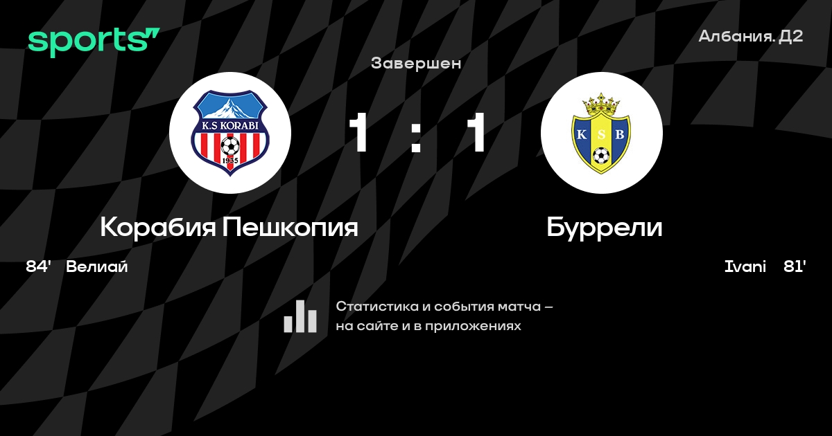 Корабия Пешкопия - Буррели: статистика матча от 14 апреля 2018