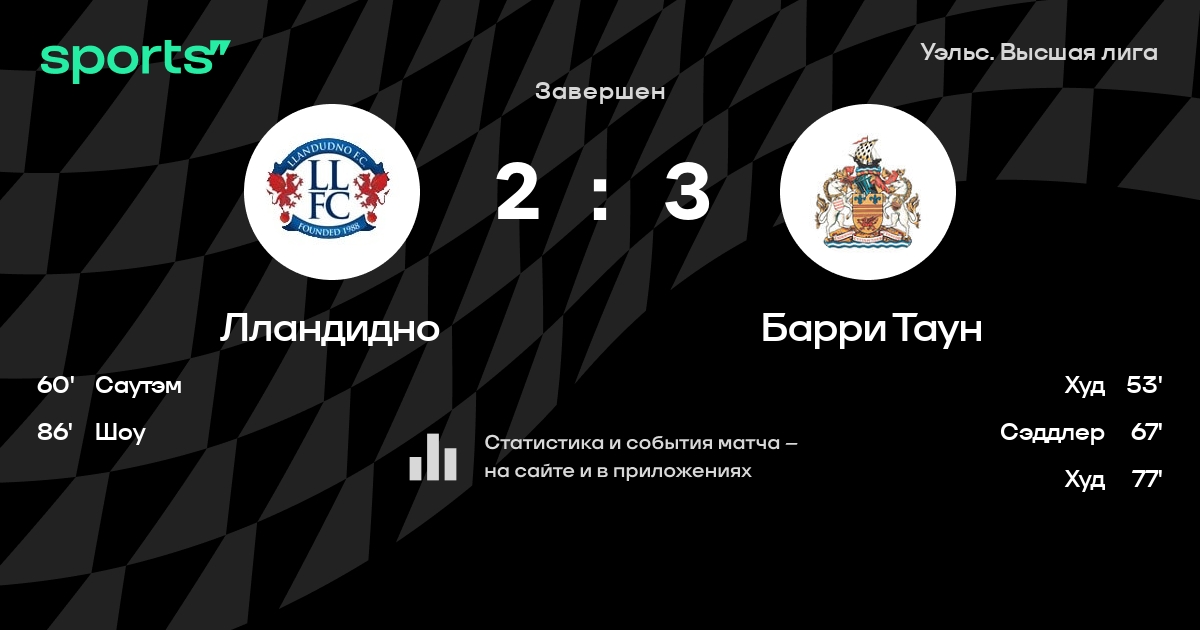 Лландидно - Барри Таун: составы на матч