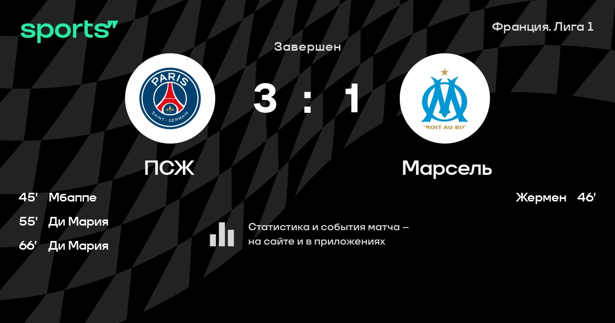«ПСЖ» – «Марсель». Ди Мария забил со штрафного, назначенного за удаление Манданда