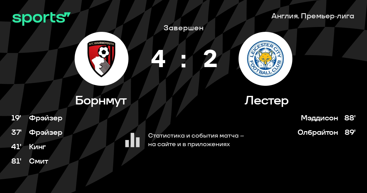 Шмейхель - Чилуэлл, Магуайр, Морган, Рикарду Перейра - Менди, Ндиди, Мэддисон, Грэй, Геззаль - ВардиЗапасные: Уорд, Амарти, Эванс, Фукс, Олбрайтон, Ихеаначо