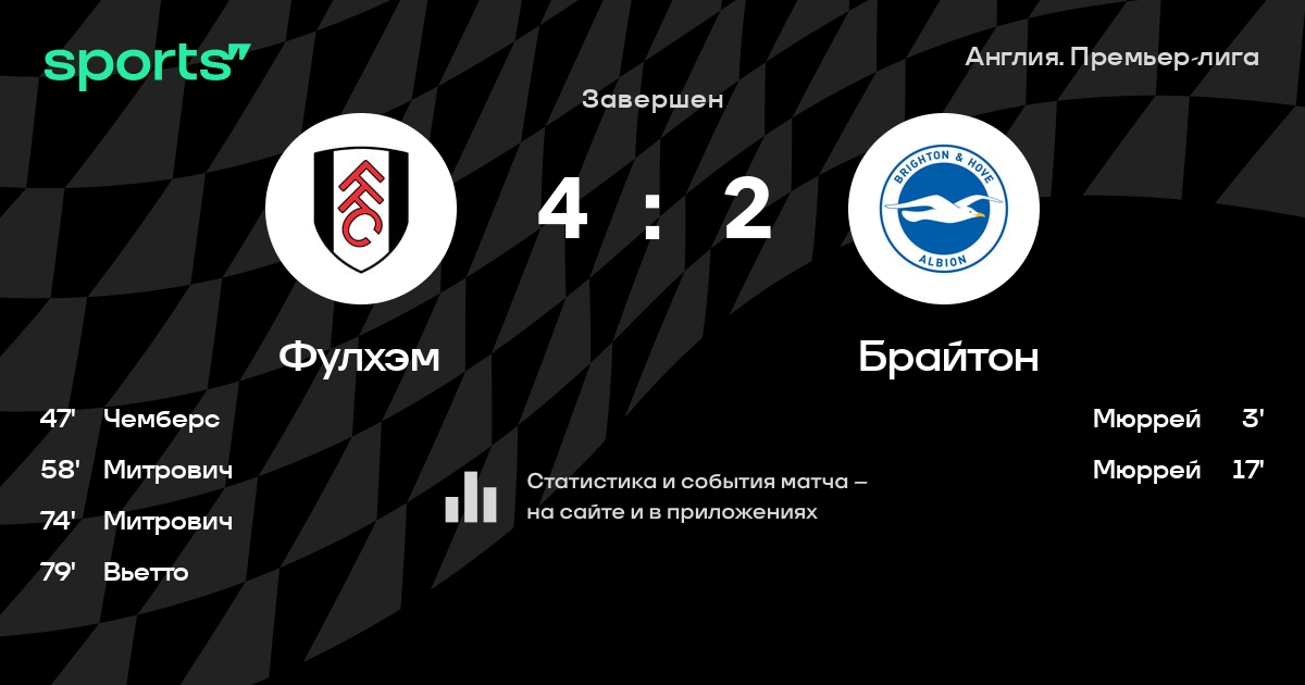 «Фулхэм» победил «Брайтон» (4:2), уступая 0:2 к 17-й минуте матча