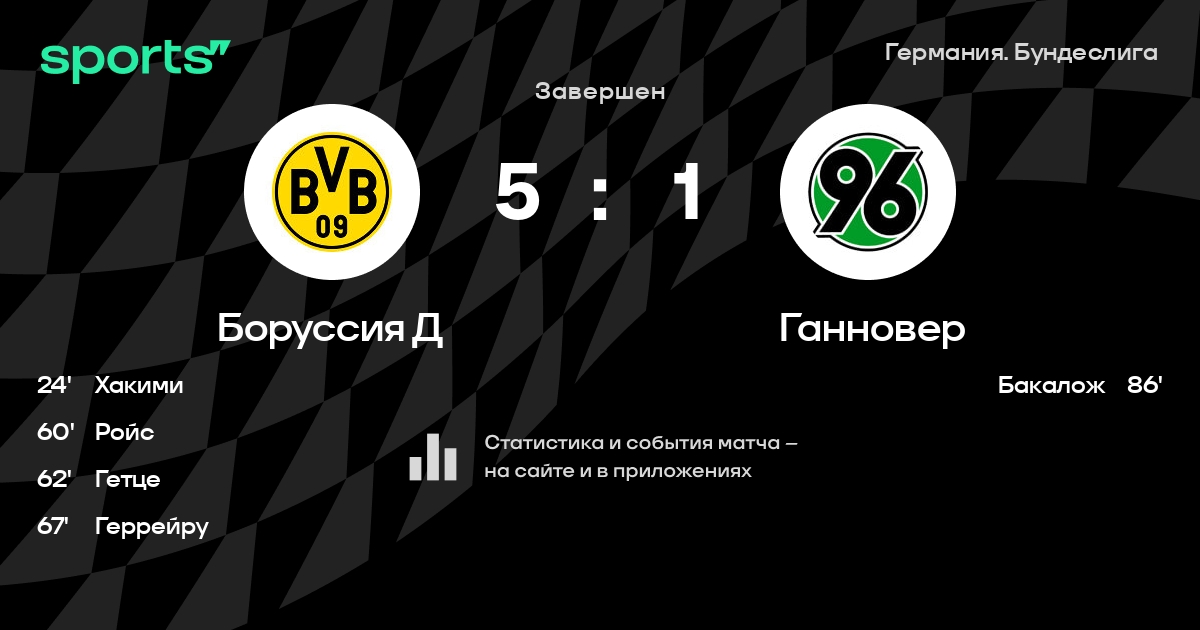 Бюрки - Хакими, Диалло, Вайгль, Пишчек - Витцель, Дилэйни, Геррейру, Ройс, Санчо - ГетцеЗапасные: Хитц, Шмельцер, Топрак, Дауд, Пулишич, Пако Алькасер, Бруун Ларсен
