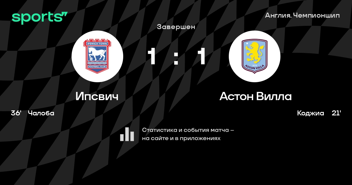 Чемпионшип. «Ипсвич» и «Астон Вилла» сыграли вничью и другие матчи