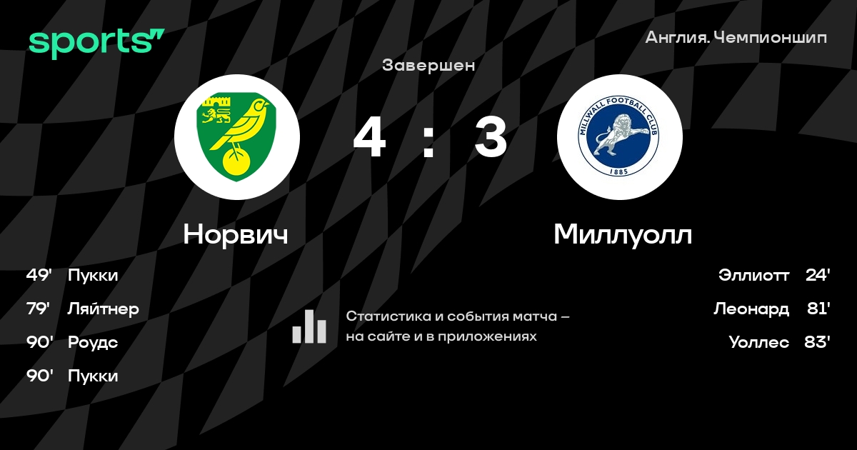 Чемпионшип. «Дерби Каунти» и «Норвич» сыграли вничью, «Лидс» победил «Халл»