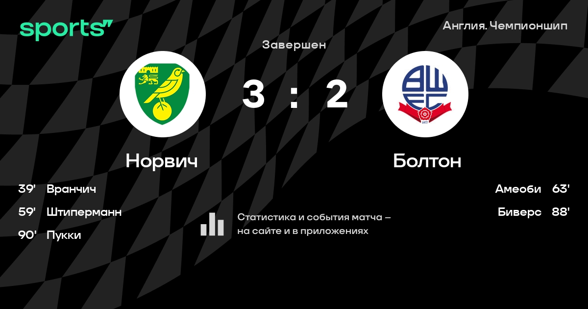 Чемпионшип. «Дерби Каунти» и «Норвич» сыграли вничью, «Лидс» победил «Халл»