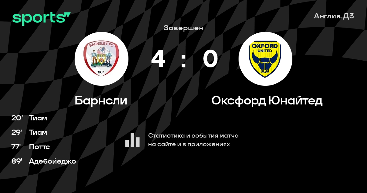 Трансляция Барнсли - Оксфорд Юнайтед