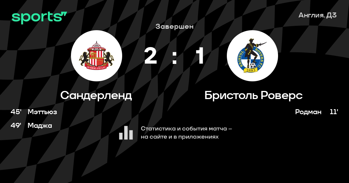 Трансляция Сандерленд - Бристоль Роверс