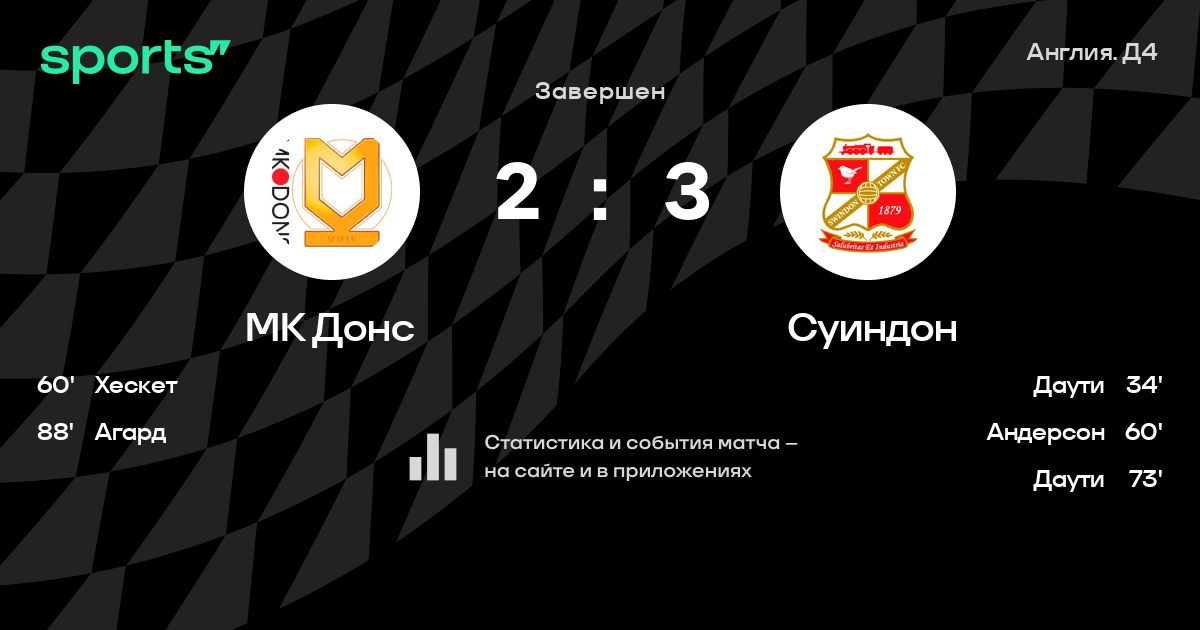 39й тур. Суиндон Таун - МК Донс 0:3 (0:0) - за явным преимуществом (+ ВИДЕО)